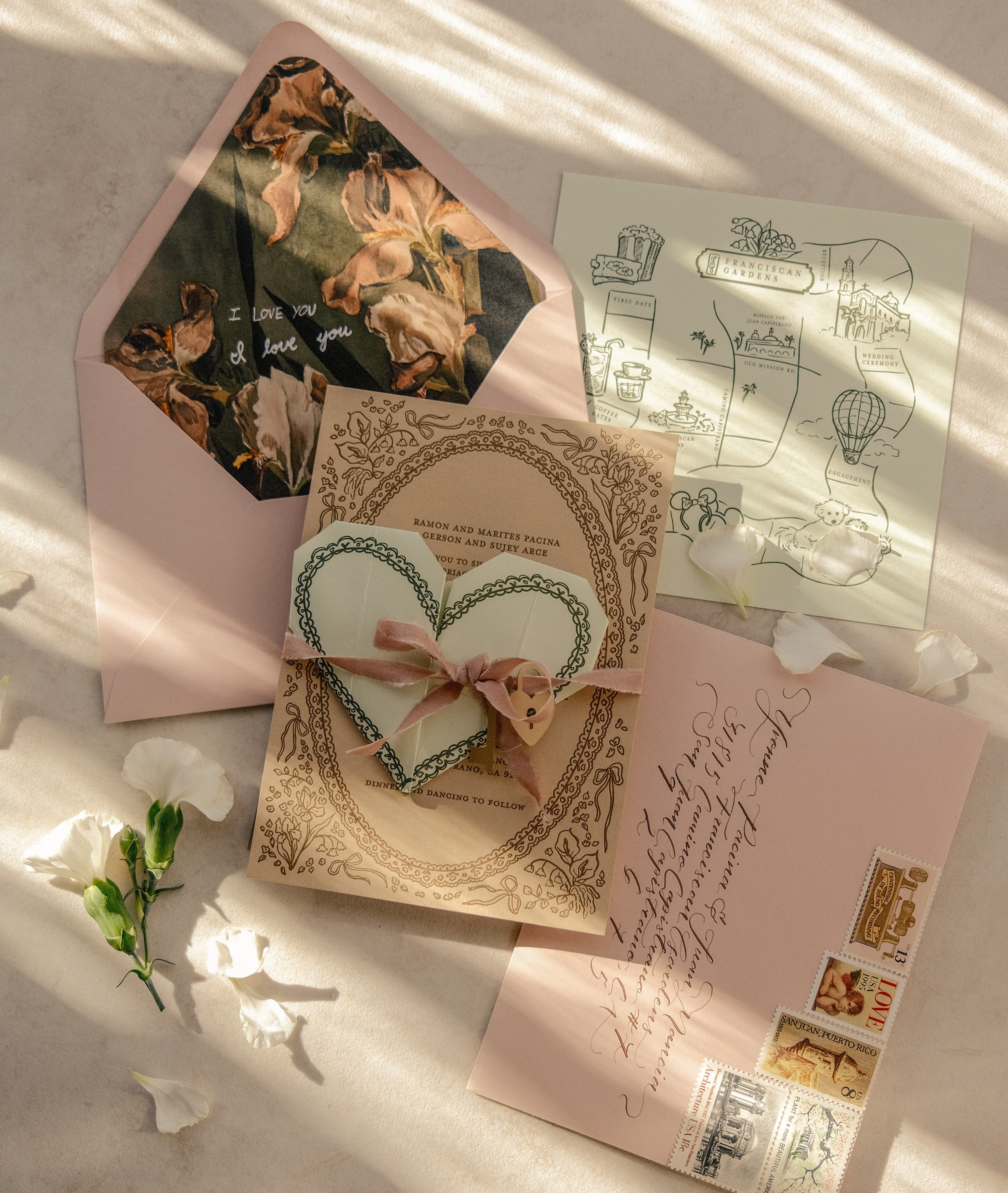 If it seems like the project is a good match based on the inquiry, we will schedule a non-commitment Design Call with the couple and wedding planner. After the call, the client has the option to pay a $500 Design Proposal fee, which includes a mood board, color palette, design sketch of the invitations, and a quote. From there, the client can decide based on the design and quote whether or not to book with us.
